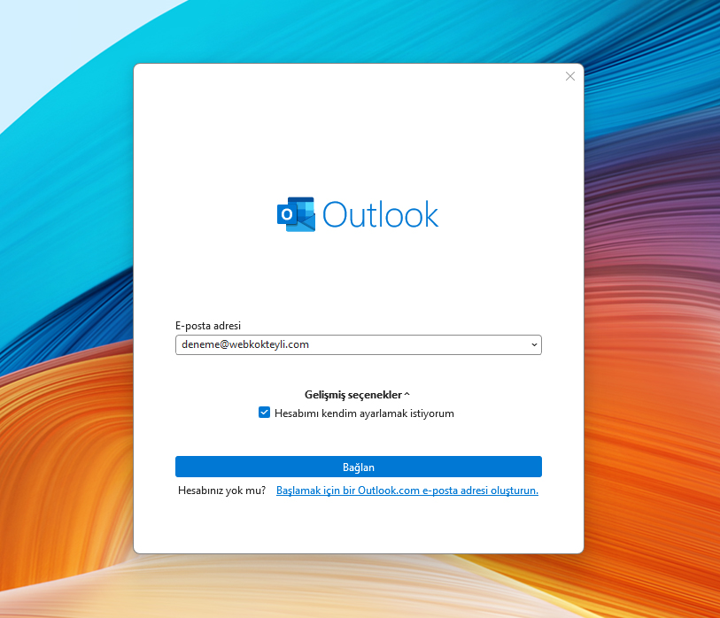 Gelişmiş seçenekler'e tıklayıp, Hesabımı kendim ayarlamak istiyorum'u işaretleyin.
