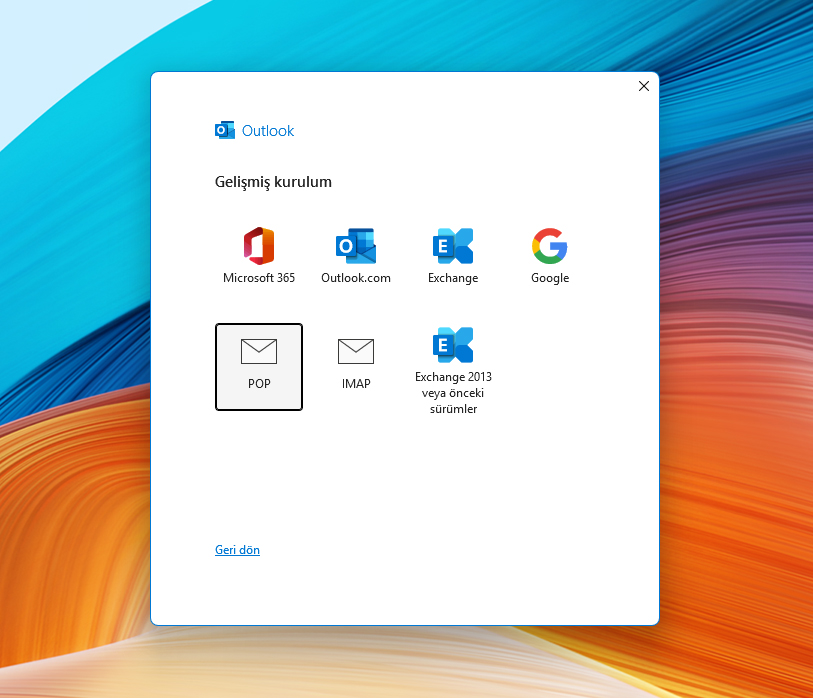 Gelişmiş kurulum sayfasında, POP seçeneğini seçiniz.