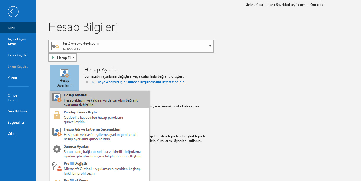- Hesap türü: POP seçiniz.