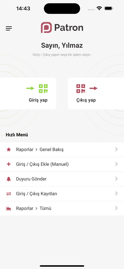 Patron uygulamasını kullanmak fazlasıyla kolay. Size gelen üyelik bilgileri ile bir defa giriş yapın. Karekod okutma tuşuna dokunun ve kodu okutun. Uygulama işte bu kadar basit.