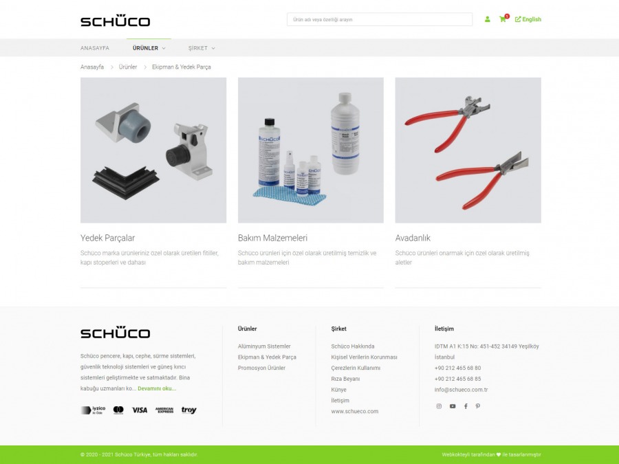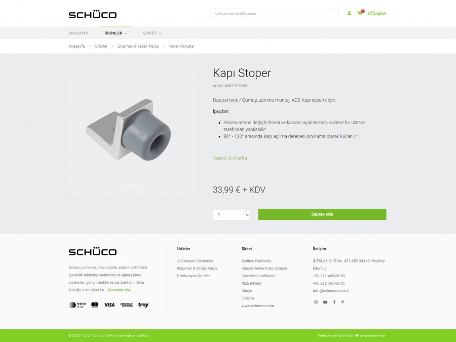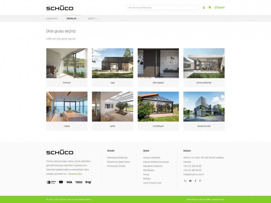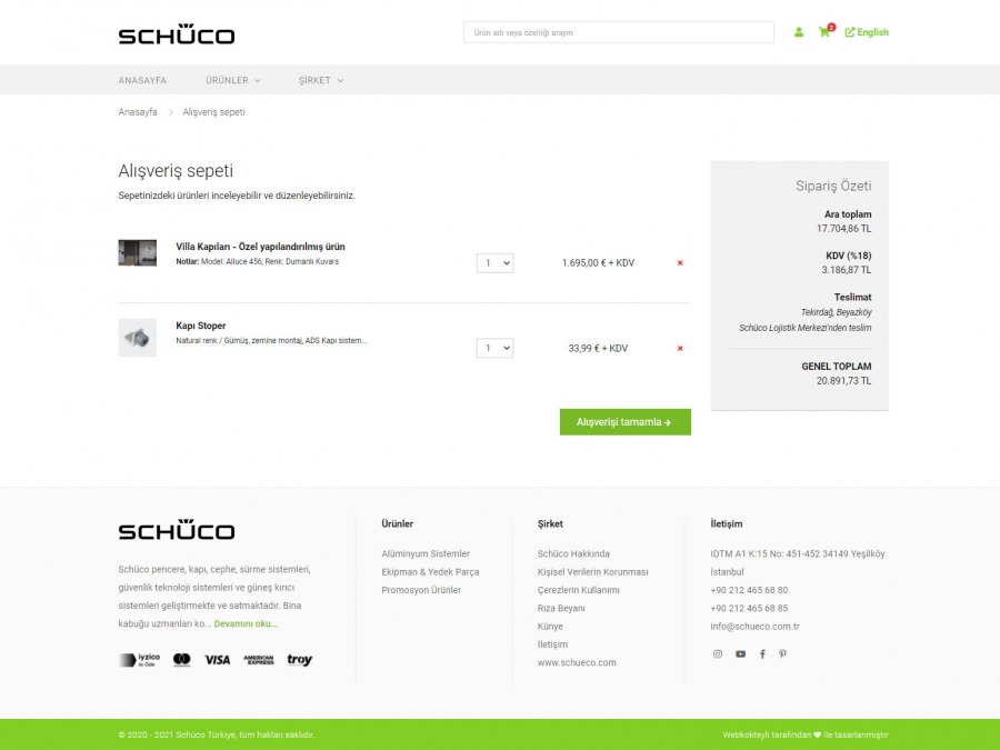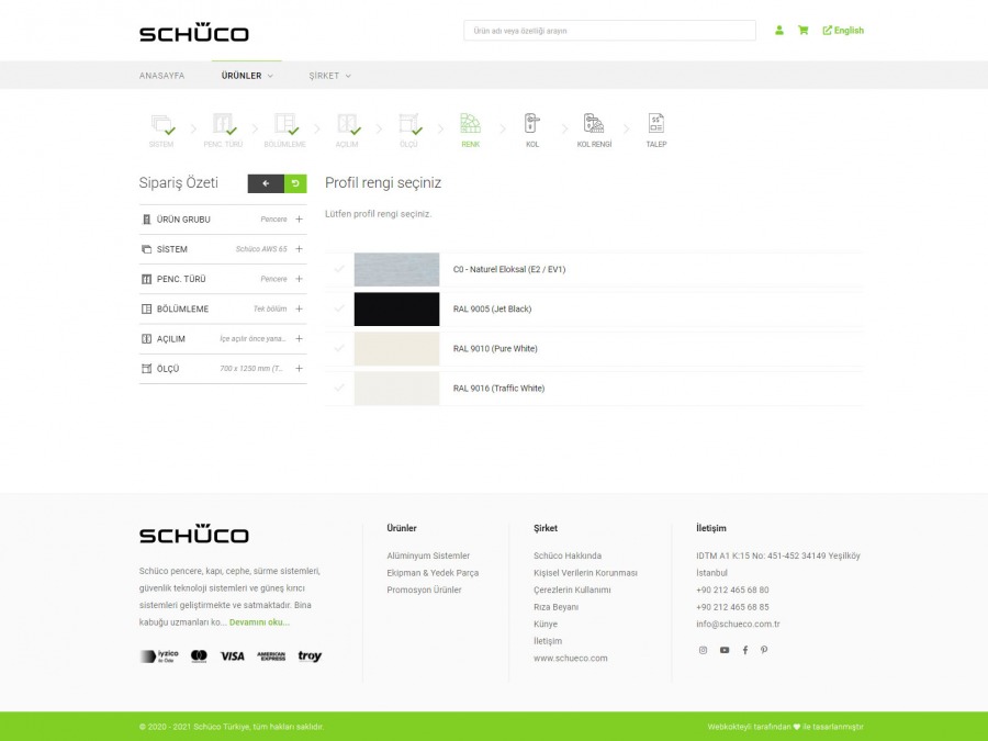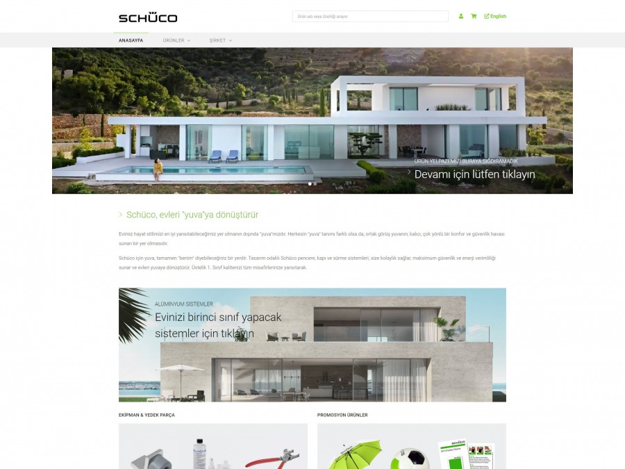 Schüco Türkiye alüminyum sistemler ürün yapılandırıcı (konfigüratör) yazılımı tamamlandığında, sistemin e-ticaret yazılımına entegrasyonu yapıldı. Bu proje için özellikle hazırlanan ve özelleştirilen e-ticaret yazılımımız ile yapılandırıcı yazılımı Schüco Türkiye'nin tüm isteklerini karşılamak için hazırdı.